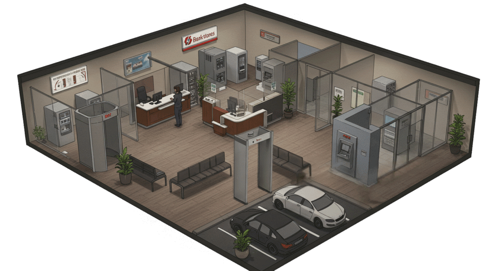 - Purpose: Monitor transactions, protect staff, and trigger silent alarms in emergencies.